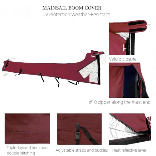 - Secure Fit: The mast end features a heavy-duty 10-gauge zipper, a top tie-down cord, a 2-inch Velcro closure on the cover, and an adjustable webbing tie-down strap and built-in buckle at the bottom edge of the boom for a secure and aesthetically pleasing fit.