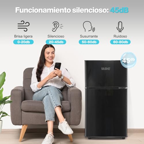 45dB Silence: With a noise level of 45dB, this mini fridge with freezer is quiet, making it ideal for rooms like bedrooms, offices and studios where calm is paramount. Its low noise level ensures that it does not disturb sleep, concentration or conversation, giving you a more comfortable and peaceful environment. Ideal for spaces where noise reduction is a priority, whether you are at home or in a university residence