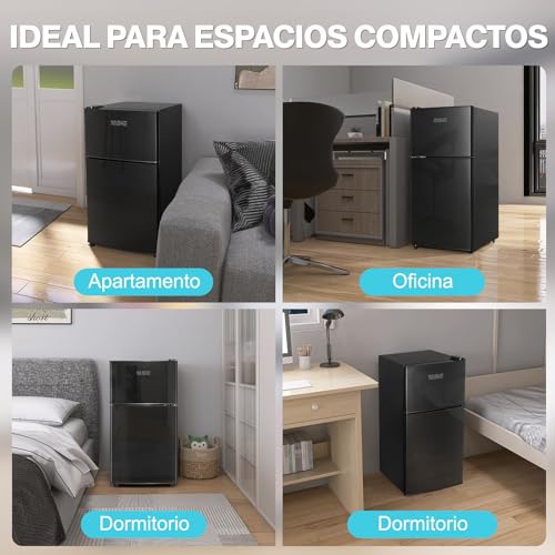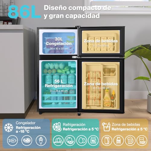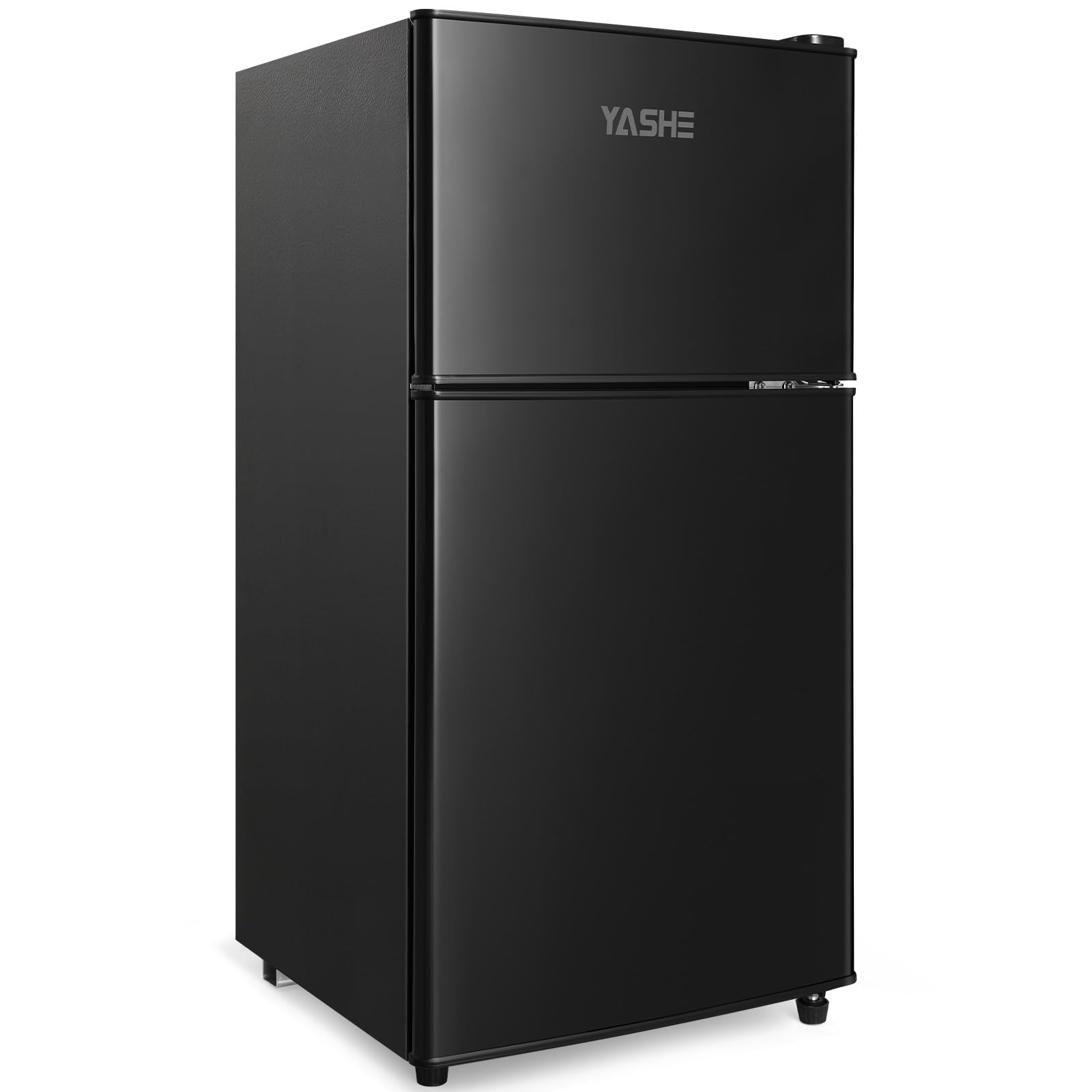 YASHE 86L Mini Fridge with Freezer, Double Door Fridge with Top Freezer, Figo Combined Freezer, Fridge Freezer for Bedroom, Office, Kitchen and Dorm, Black