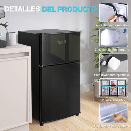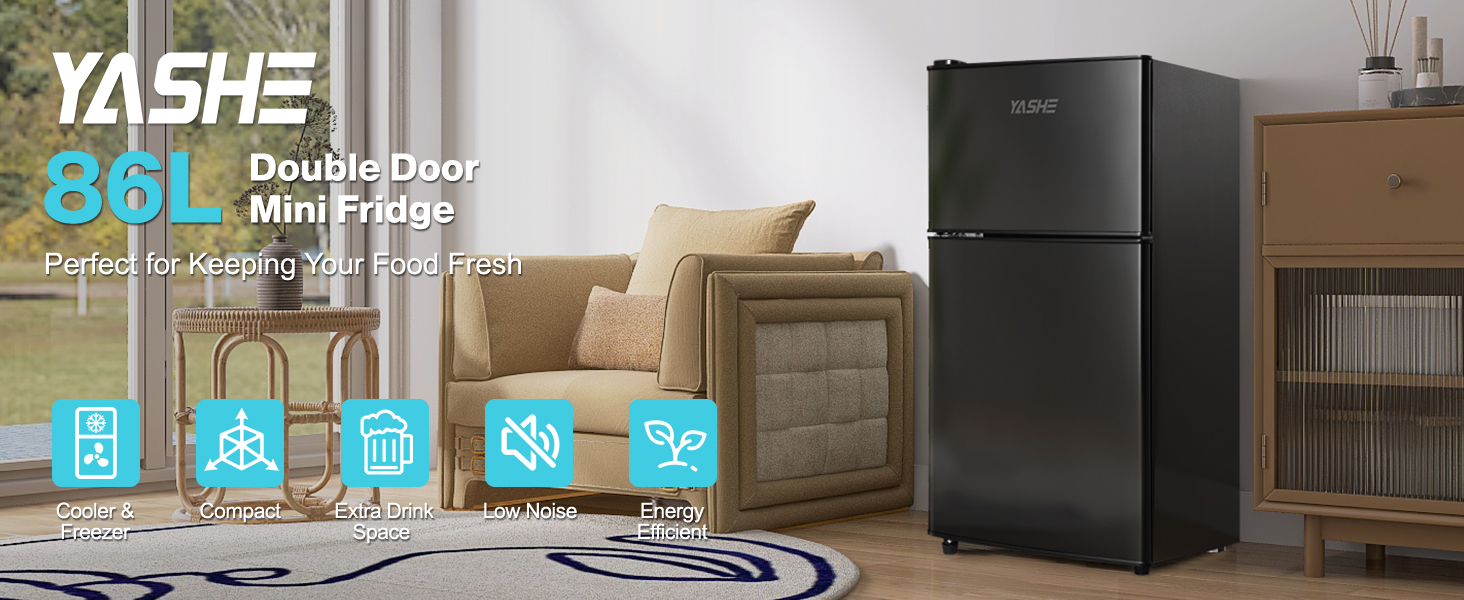 YASHE 86L Mini Fridge with Freezer, Double Door Fridge