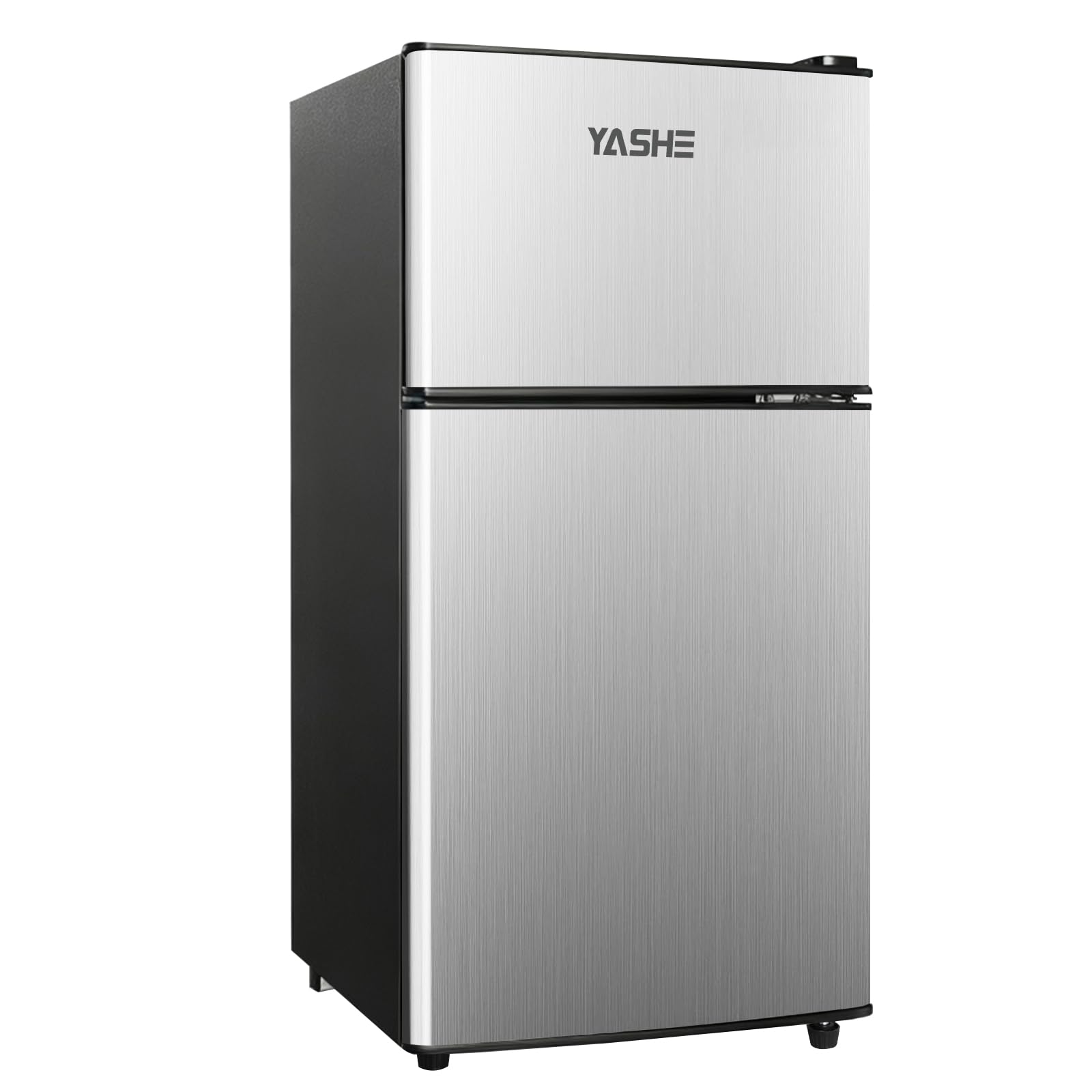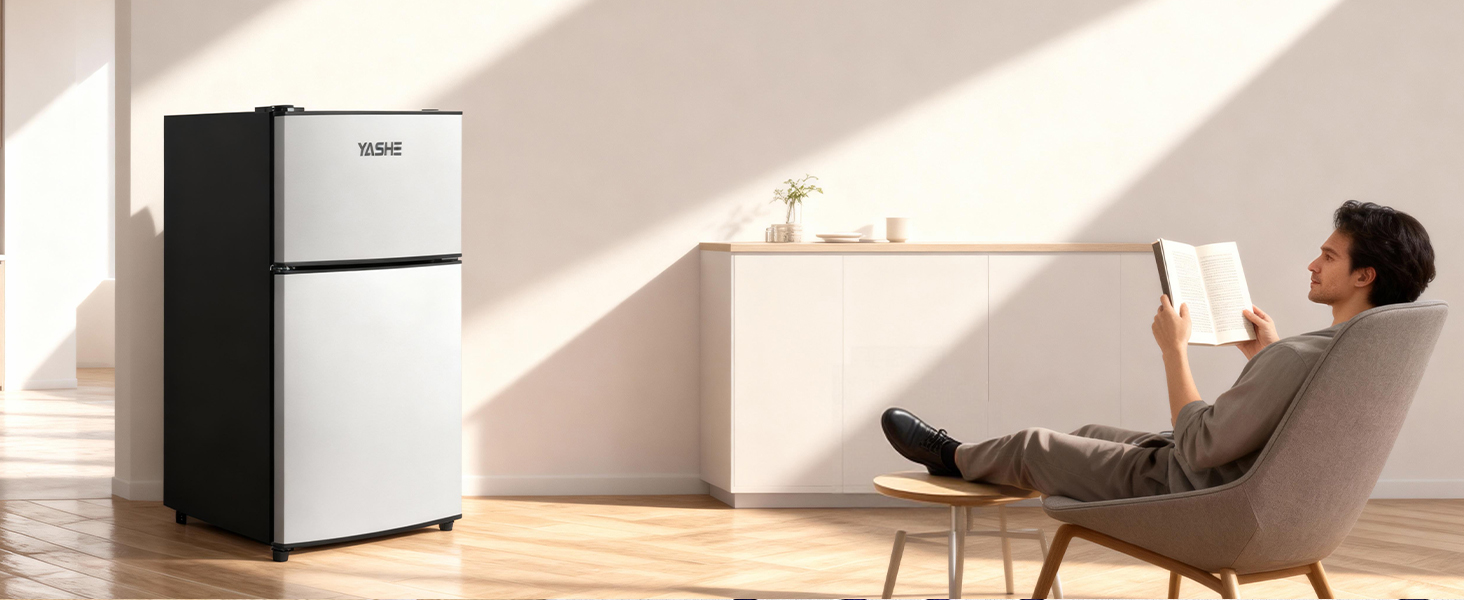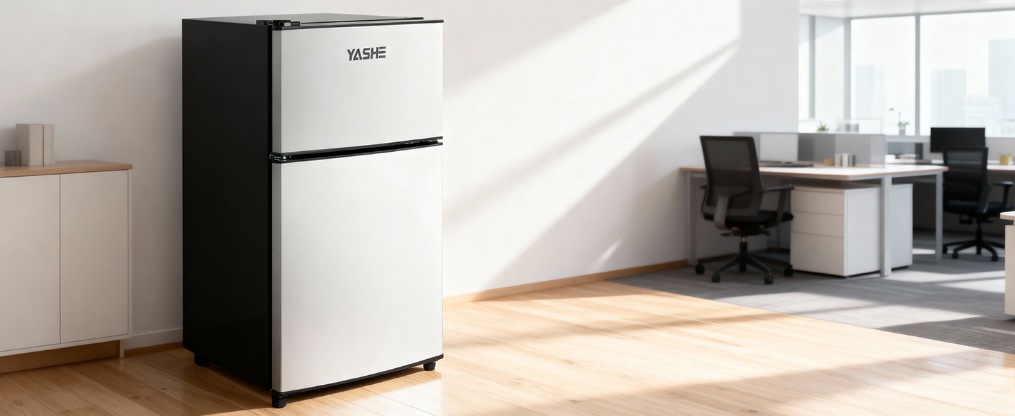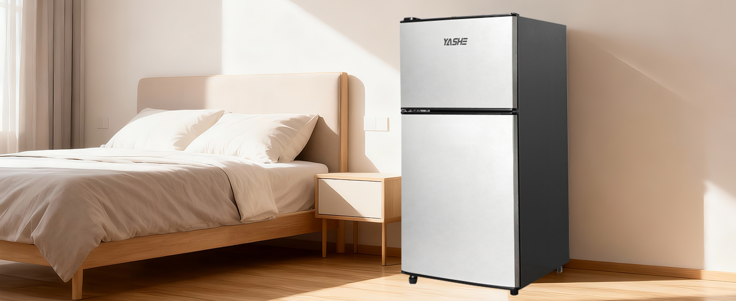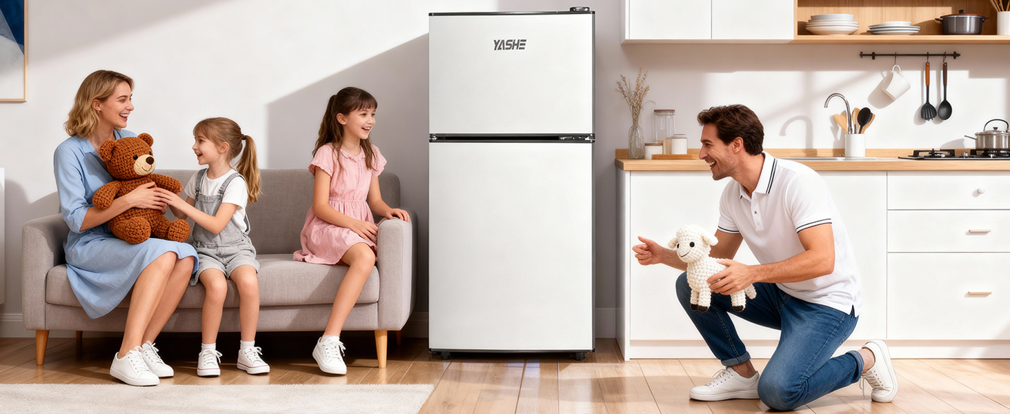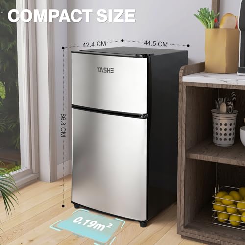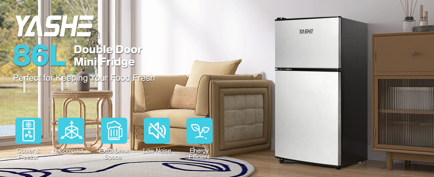 86L Capacity: The YASHE 86L Double-Door Fridge measures 42.4×44.5×86.8 cm (W x D x H). The upper freezer compartment has a 30L capacity, ideal for storing frozen foods like ice cream, frozen veggies, or quick meals, while the 56L lower refrigerator section offers ample space for fresh produce, drinks, or leftovers. Its sleek double-door design ensures easy access and organized storage for both frozen and fresh items. Perfect for use in kitchens, dorm rooms, offices, small apartments, or even RVs