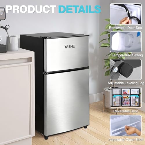 Thoughtful Details: The automatic LED light helps you easily find items in the dark, while the bottom leveling legs ensure stable placement on uneven floors. The removable door seal simplifies cleaning, keeping your fridge hygienic. Additionally, the detachable glass shelf provides flexible storage options, allowing you to adjust the space inside based on your needs. For example, you can remove the shelf to accommodate taller items like bottles or jars, or keep it in place for organizing smaller items such as cans, snacks, or condiments