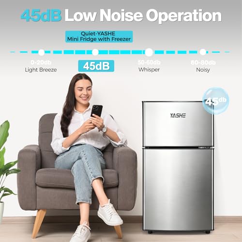 45dB Quiet Performance: With an operating noise level of 45 dB, this mini fridge with freezer runs quietly, making it ideal for places like bedrooms, studies, and offices where peace and quiet are important. Its low noise ensures it won’t interfere with sleep, concentration, or conversations, giving you a more comfortable and undisturbed environment. Perfect for spaces where noise reduction is a priority, whether you're at home or in a dorm