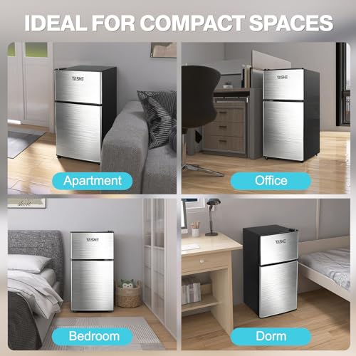 Adjustable Thermostat: With a range from -18°C to 5°C, this mini refrigerator for bedroom or office offers 7 adjustable temperature settings to suit your needs throughout the year. Whether storing beverages in the summer heat or keeping perishable items fresh in cooler weather, you can select the ideal temperature. The optimum temperature range for perishable food storage is 3-5°C. The freezer temperature will adjust based on the overall fridge settings