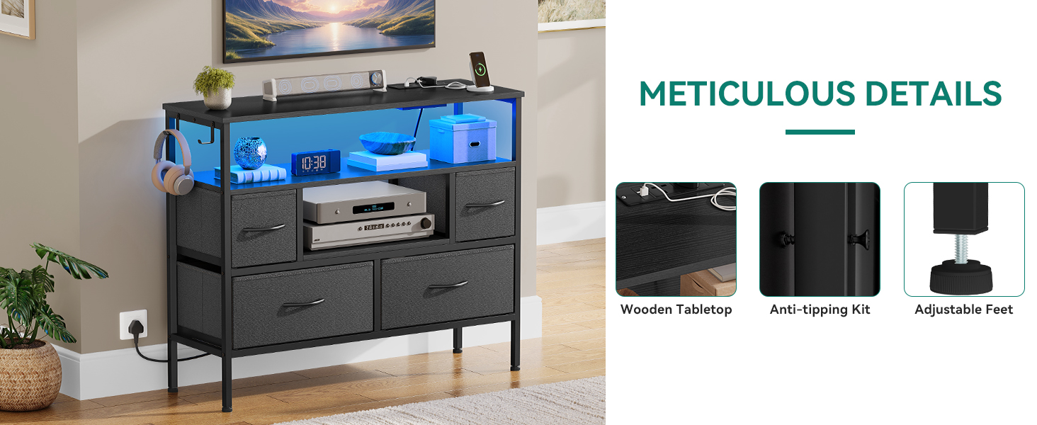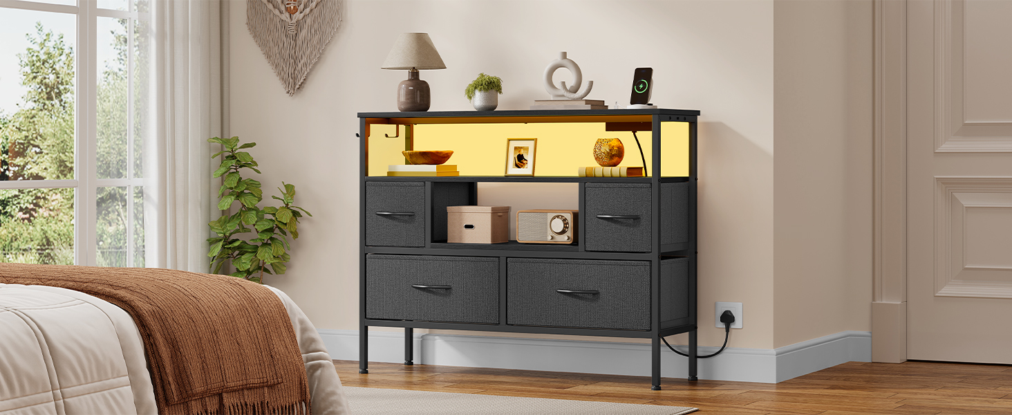 YITAHOME Fabric Drawers Cabinet with Power Outlets & LED