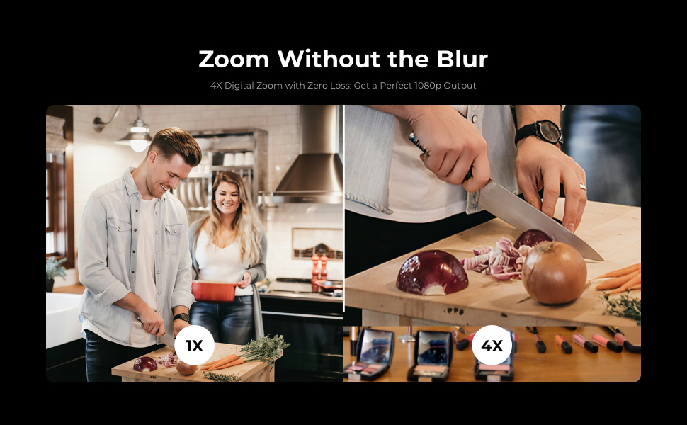 4x Digital Zoom at 1080P: Maintains a crisp 1080p image even when zoomed, with no blur or cropping