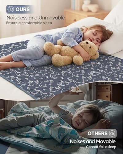 4 Layers of Protection: This bed wetting sheets is composed of a breathable and skin-friendly organic cotton outer layer, a soft polyester fiber filling layer, a noise-free and fully breathable TPU waterproof layer, and a non-slip bottom, dedicated to protecting kids sleep and showing care.