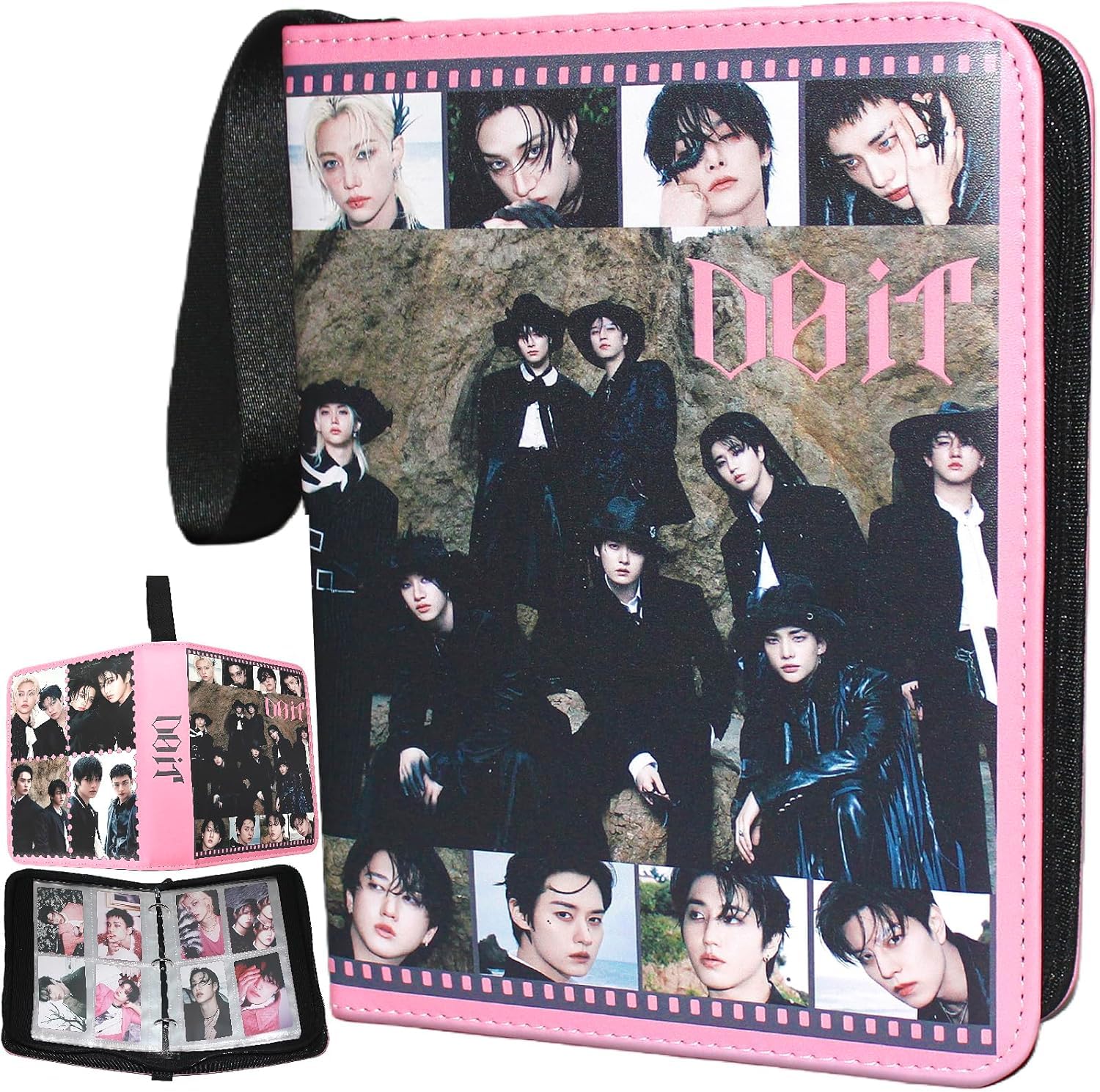 The Size of Stray Kids photocards binder is 7 X 1.85 X 9.65 inches. It can hold 400pcs cards, which enables many of your favorite stray kids cards to be stored and displayed.
