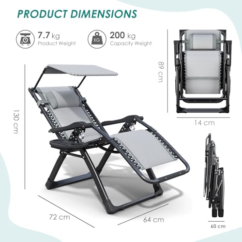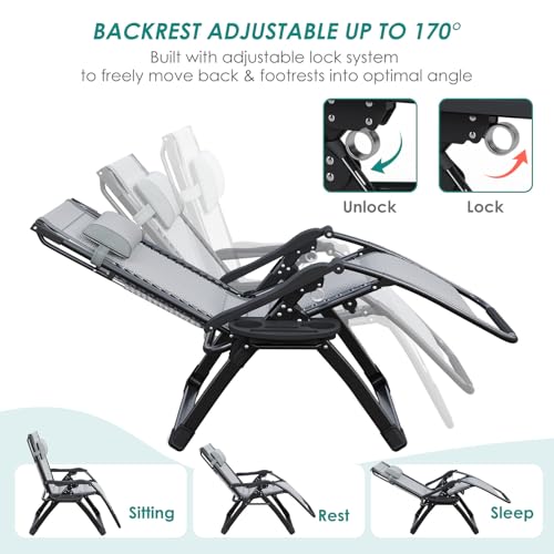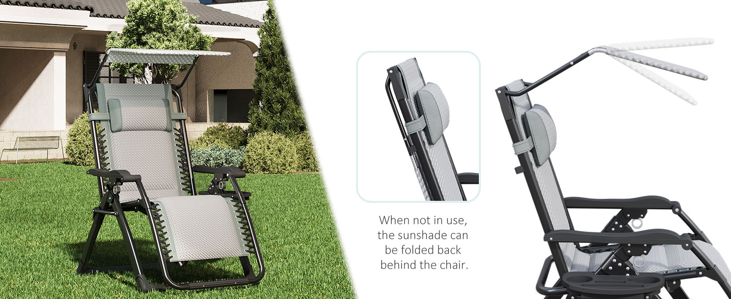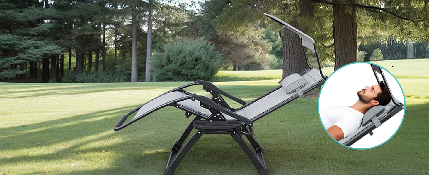 - Adjustable Canopy & Headrest: Our zero-gravity lounge chair features an adjustable rotating canopy to shield your face and eyes from direct sunlight, along with a detachable headrest pillow for enhanced neck support. Easily adjust both features to enjoy all-day outdoor comfort