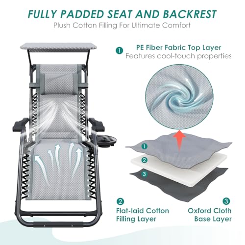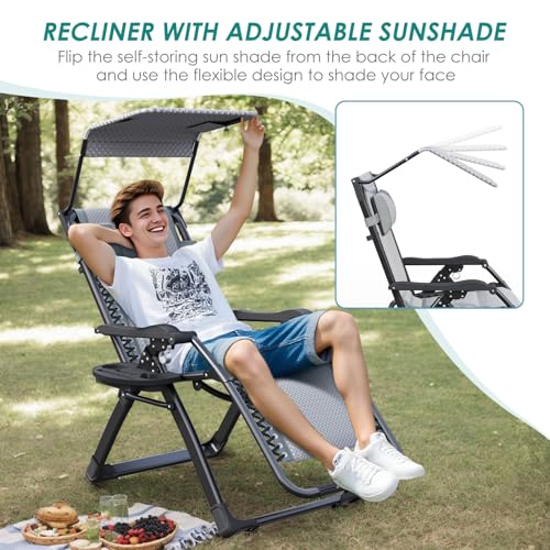 Zero Gravity Lounge Chair – Foldable Patio Recliner w/Adjustable Canopy, Headrest & Cup Holder for Backyard, Poolside & Beach (Gray)
