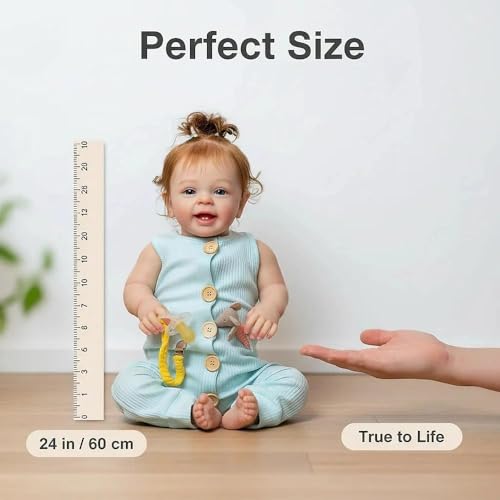 - Realistic baby doll: Our reborn baby girl doll measures 24 inches in length. She comes with lifelike baby poseable vinyl material.For a real baby feel, suitable for children to cuddle .