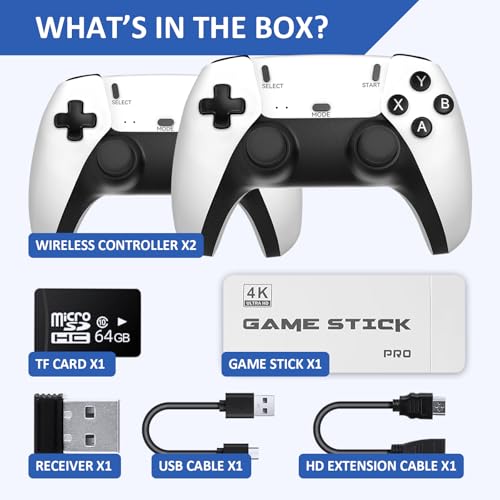 ZYGSEVE Games Stick, 20,000+ Pre-Loaded Games, 4K HDMI TV Games Console, 23 Emulators, 2 Wireless Controllers