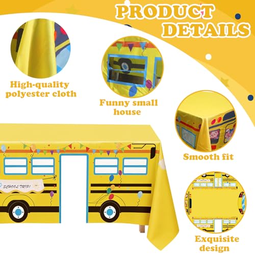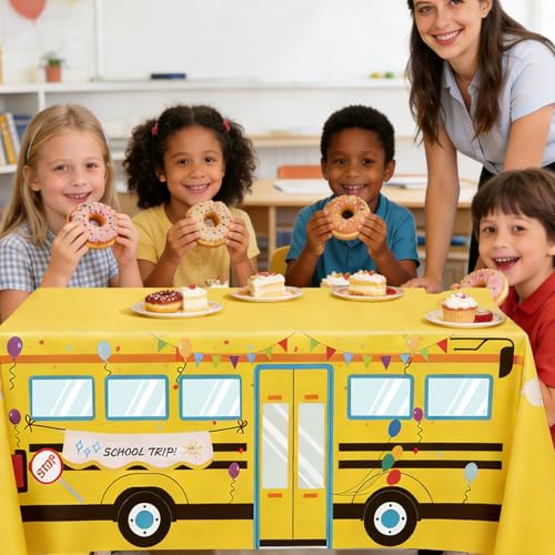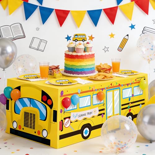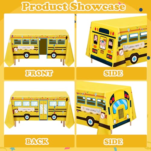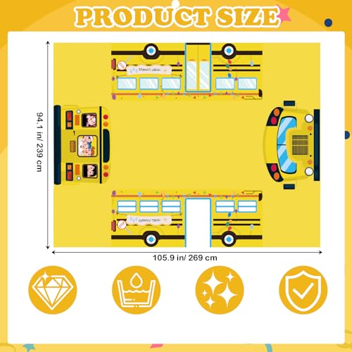 【School Bus Theme Decoration】 You will receive a custom school bus tablecloth tent measuring 230×300CM (10FT x 7.5FT). Its oversized, full-coverage design easily creates a complete school bus theme scene, suitable for both table setting and venue decoration, effortlessly handling your party decoration needs.