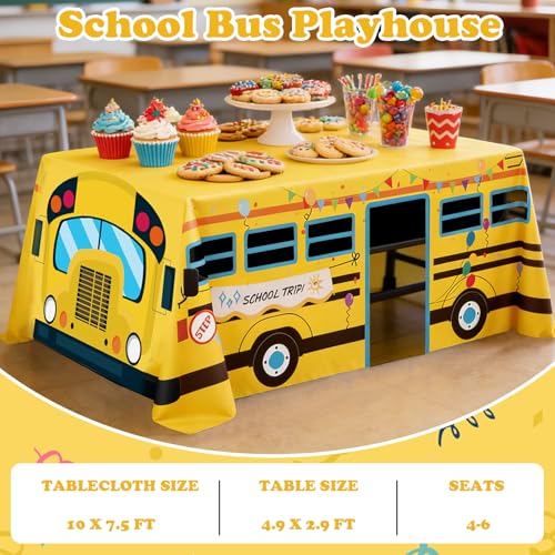 10FT x 7.5FT School Bus Tablecloth,Table Fort Tent Cover Playhouse,Back to School Table Cloth Decorations,Indoor & Outdoor Tablecloth for School Bus Theme Party Birthday Supplies