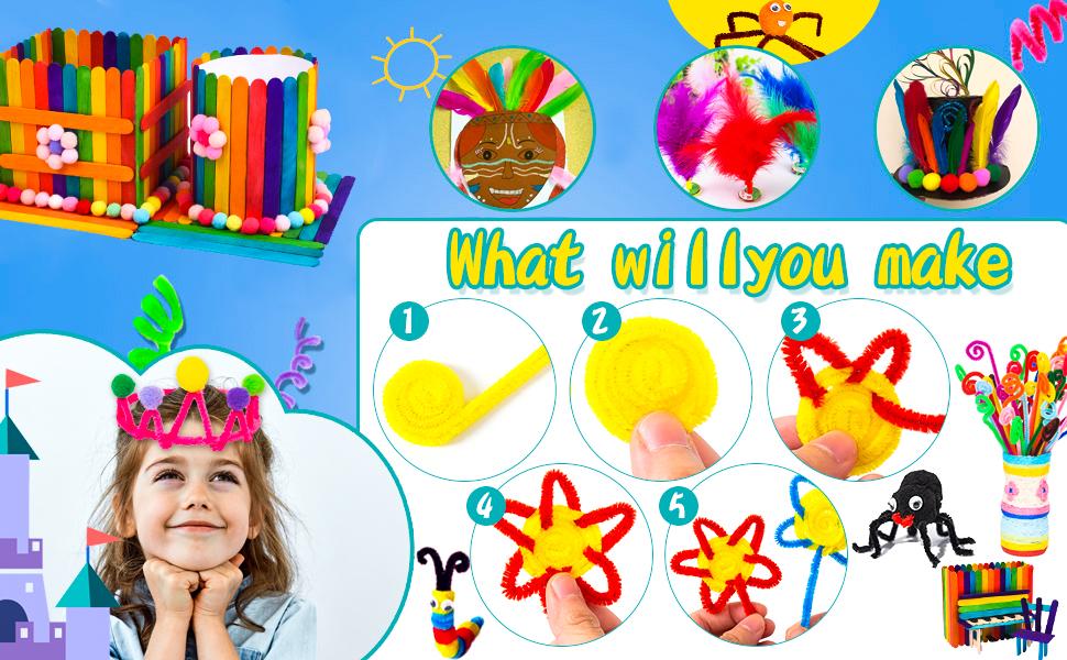 Super complete set with over 1500 pieces: Includes craft sticks, googly eyes, pom-poms, beads, feathers, and many other craft accessories. You don't need to buy anything else, everything you need to create is already here!