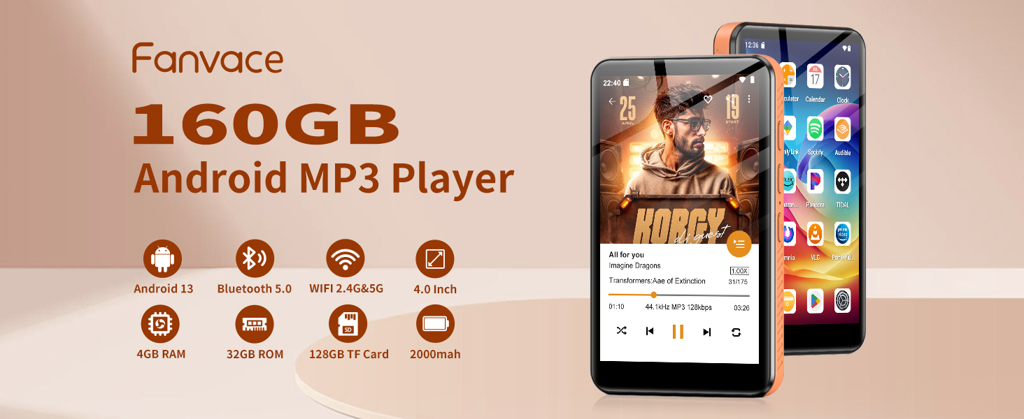 Fanvace Android 13 MP3 Player with 160GB Storage