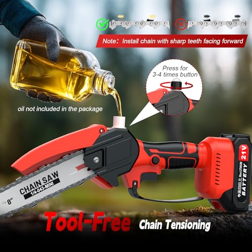 【Ergonomic Design】Designed for comfort and reduced fatigue during extended use, electric pole saw featuring a rubber handle and ergonomic design. ordless pole saw is user-friendly for seniors and women. This mini electric pole chainsaw is easy to use even for women, beginners and seniors and can be operated with one hand.
