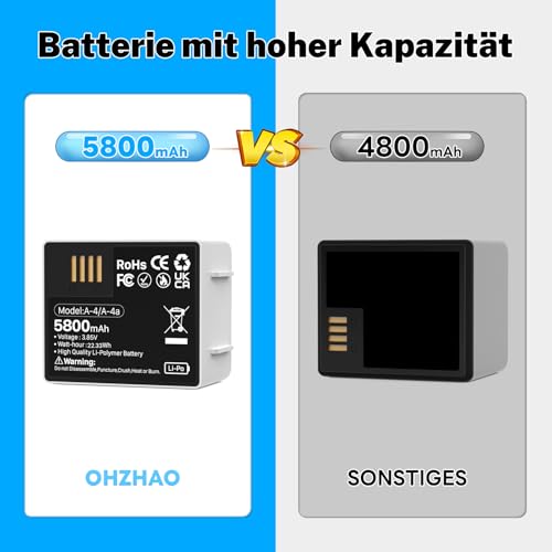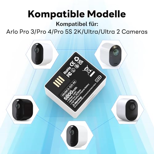 - OHZHAO 2 Pack 5800mAh for Arlo Pro 4 Battery, 2025 Upgrade High Capacity Rechargeable Lithium Battery for Arlo Pro 5S 2K, Pro 4, Pro 3, Ultra 2 Cameras