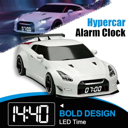 Racing Aesthetics for Your Desk: Add a bold statement to your space with this hyper-car alarm clock, which captures the sleek lines of a modern sports car. Elevated by simulated dynamic lights, it doubles as premium nightstand decor—perfect for every car lover.