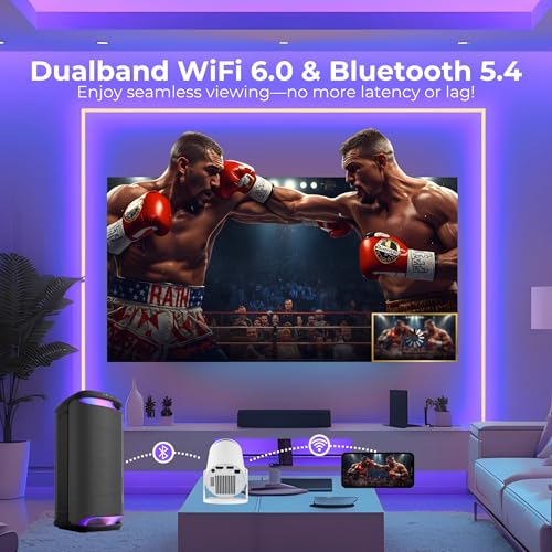 Stunning 4k viewing for immersive cinema: Enjoy sharp, vibrant visuals for movies, streaming and everyday entertainment with a powerful smart projector designed to transform your bedroom or living space into a true cinema experience. Ideal for film nights, sports, and family viewing with a large, clear screen that brings content to life.