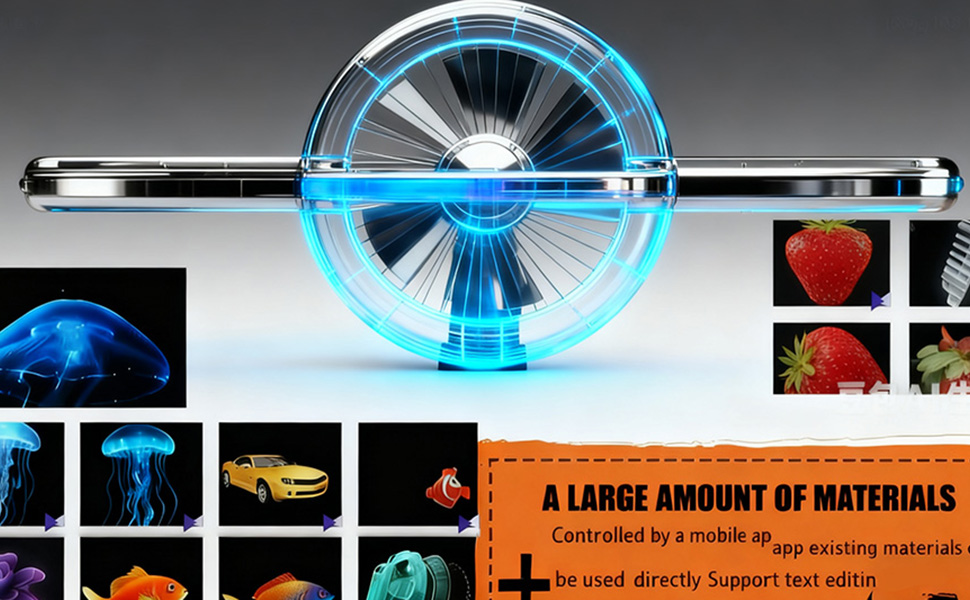 【Borderless Floating Visual Effect】 3D hologram LED fan projector, displays images without borders or backgrounds, creating a stunning "floating in air" look. Draws attention to your products with eye-catching, dynamic visuals that stand out