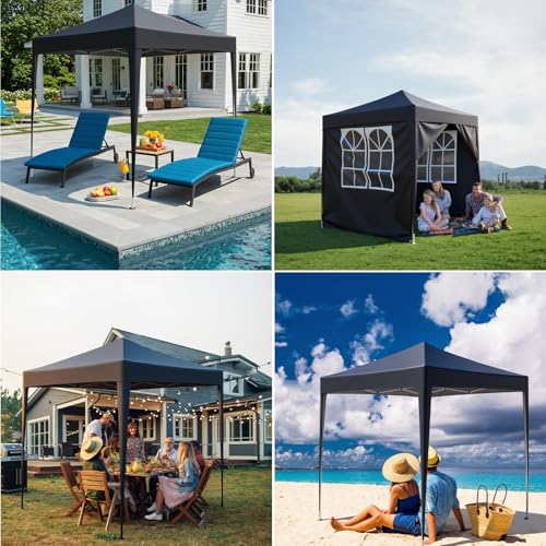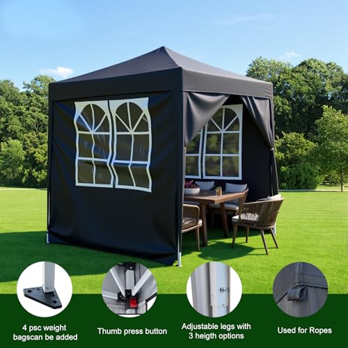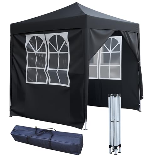 2x2m Pop Up Gazebo with 4 Removable Sidewalls, Portable Outdoor Party Tent with Carry Bag, All Weather Canopy for Camping, Markets, Garden Events (Black)