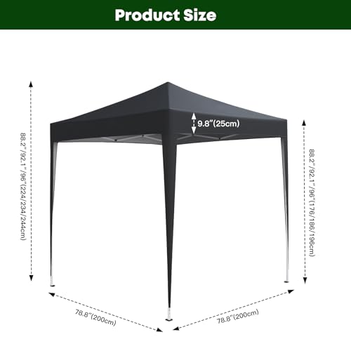 - SPACIOUS COVERAGE: 2×2 metre pop-up gazebo provides 4 square metres of sheltered space, with adjustable legs offering 3 height options and a peak height of 96 inches (244cm) for versatile outdoor use