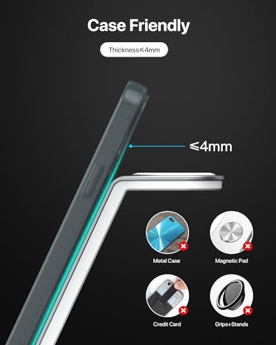 [Case Friendly]:No need to repeatedly remove your phone case before charging. This wireless charging dock can transmit charging power directly through most of the phone case less than 4 mm thick. (Note: please remove the magnetic and metal accessories or credit cards before charging).[What You Get]: 3 in 1 Wireless Charger Stand x 1,USB Type C Cable(1.5 m / 5 ft) x 1,20 W QC 3.0 Adapter x 1,User Manual x 1