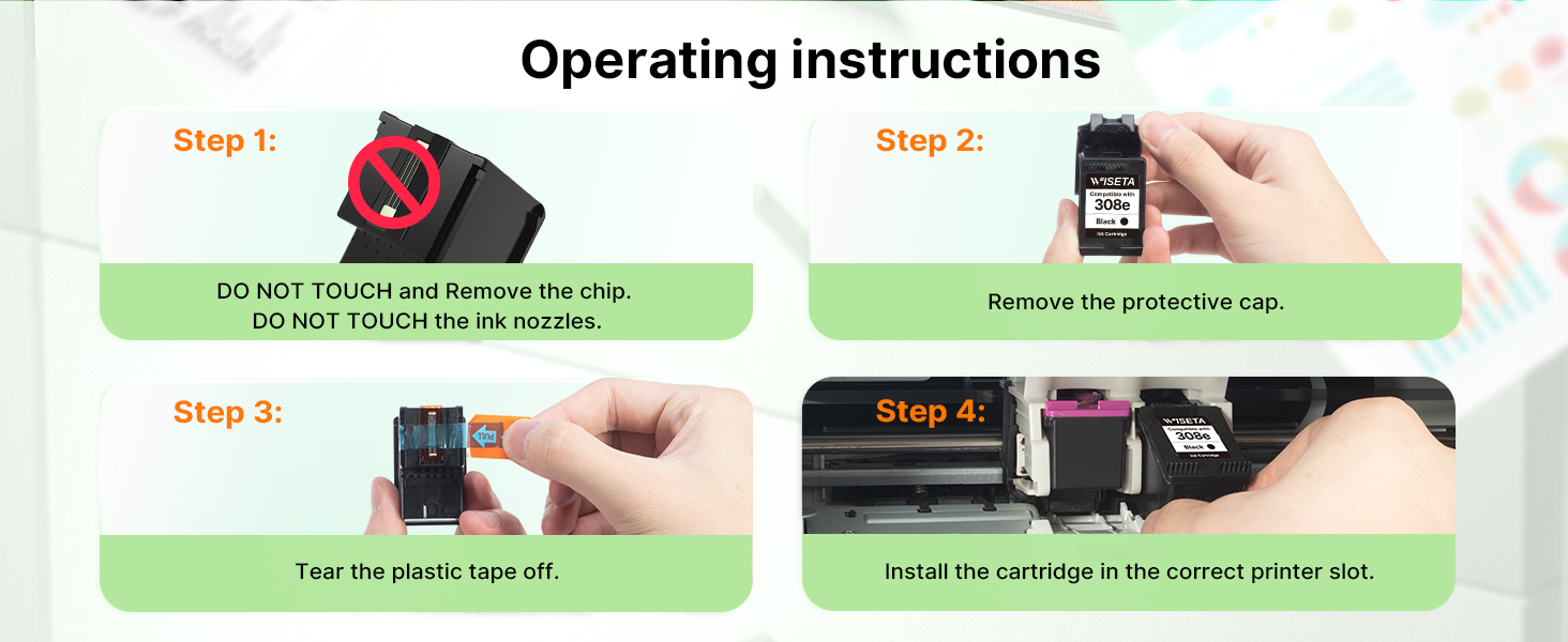 Our 308e(XL)Ink Cartridge Replacement for HP 308e Ink Cartridges undergoes rigorous testing before shipping to ensure you outstanding print quality and reliable performance; smooth printing without fouling,Produce with Brilliant Color and Sharp Black Printing Effects;Dedicated technical support is available to you at any time.