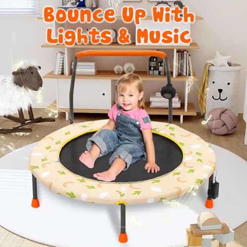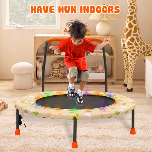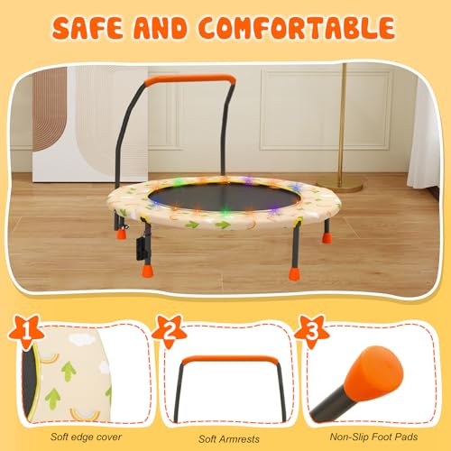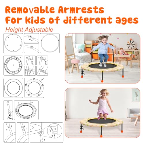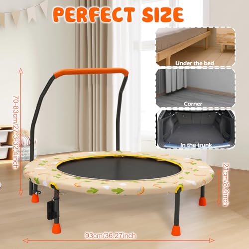 36“ Kids Trampoline Mini Fitness Height Adjustable Trampoline Cover with Handrail and Safety Padded Indoor/Outdoor Use for Toddler Boys Girls Play and Exercise
