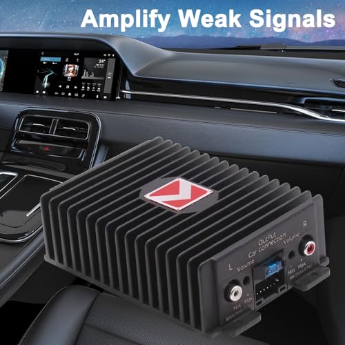 Enhanced Quality: Designed specifically for car player systems, this amplifier significantly improves the sound quality, delivering a rich and immersive experience. Amplify Weak : The amplifier boosts the weak from your source or pre-amplifier without compromising the quality, resulting in enhanced sound performance from your speakers. Powerful Cores and Pure Copper Transformer: With a robust cores and built-in pure copper transformer, this amplifier ensures continuous and stable enhancement of quality, providing a and consistent output. Premium Quality: The one-piece aluminum alloy body and sealed enclosure not only provide a stylish appearance but also offer nice shock . The large grooves design effectively increases the heat dissipation area, ensuring optimal performance even during extended use. Easy Installation and Compatibility: The amplifier comes with a convenient plug-and-play connection cable, allowing for seamless and hassle- installation. It is compatible with most car systems, making it suitable for a wide ranges of vehicle.