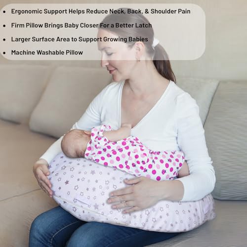 - Comfortable for Baby, Easier on You: Gap-free feeding pillows have the firmer, higher & larger cushion area to lift your baby at the perfect height and reducing the strain on your arms, back, and shoulders. Supports multiple holds & bottle/breast/combo feeding. Due to vacuum packaging, the filling inside the sets will be flattened — just fluff it up by hand or toss it in the dryer for 5–10 minutes to restore its shape.
