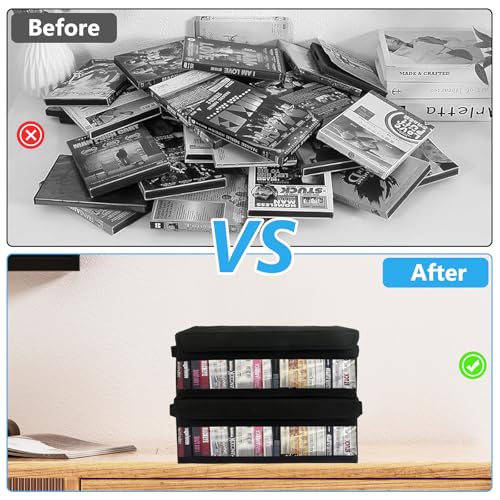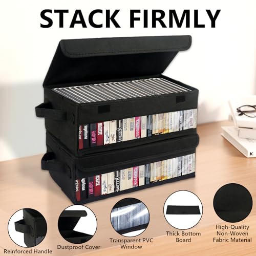 【Durable & Functional Design】This CD storage box is made of durable non-woven fabric. It is moisture-resistant, long-lasting, biodegradable and recyclable, with no damage or breakage even after long-term use. It features a simple black appearance and a flip-top design, which is stylish and effectively dust-proof. More thoughtfully, it has a clear see-through side that lets you view CD contents directly, making disc access easier and organization effortless.