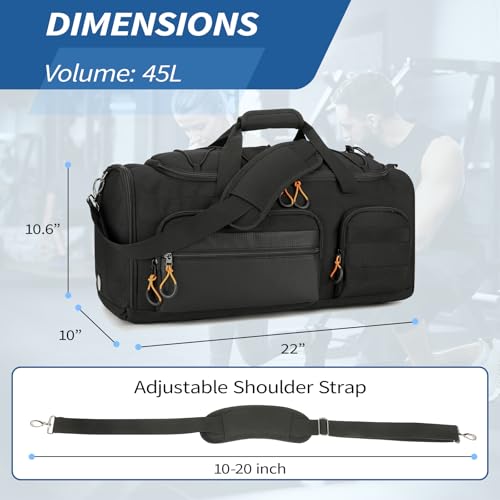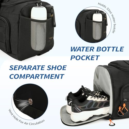 45L Gym Bag for Men, 3-in-1 Duffle Bag Backpack for Travel, Sports Duffel Bags for Gym Workout, Weekender Overnight Bag with Shoe Compartment, Wet Pocket, Black