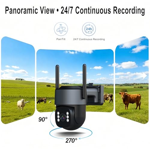 4G LTE Solar Security Camera, No WiFi or Power Needed, Off-Grid Smart AI Camera with 24/7 Continuous Recording, 2K HD, 270° Pan 90° Tilt, Color Night Vision, Two-Way Talk, Waterproof