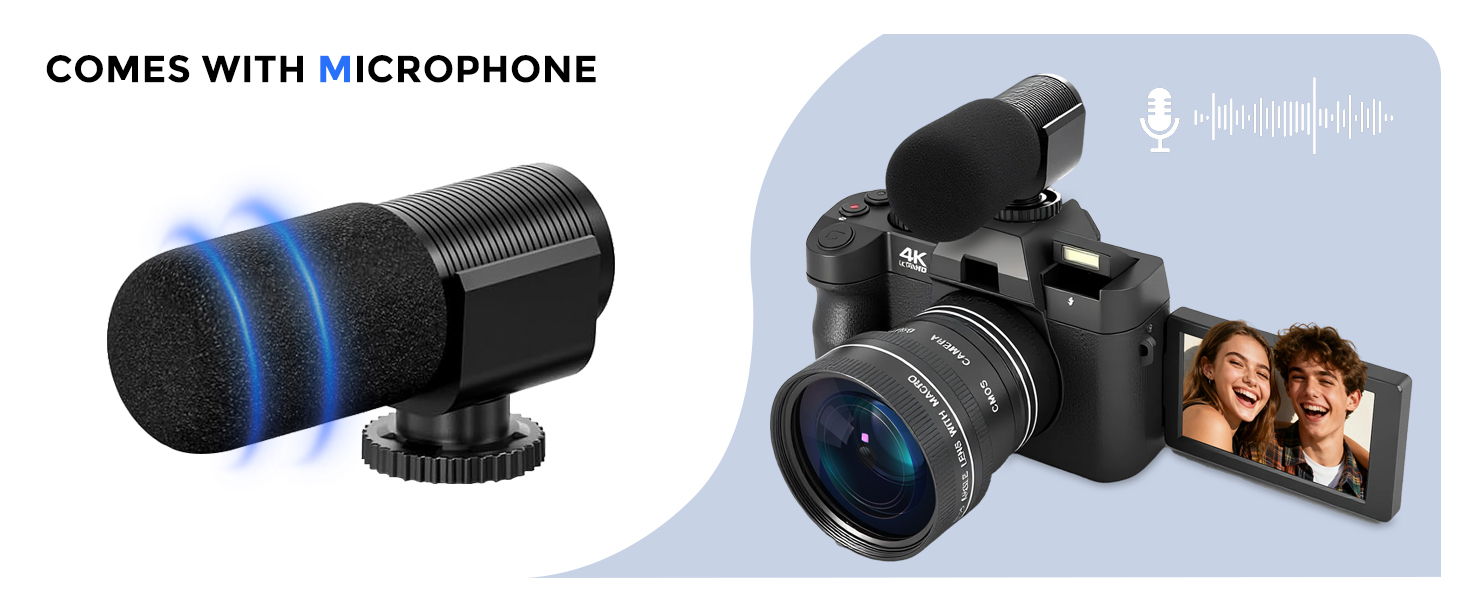 [ Come with Rich Add-ons ] The compact digital camera comes with rich accessories kit, including wide-angle & macro lens, Microphone, 2 high endurance 1500mAh batteries, battery charger, 32GB MicroSD card, card reader, strap, USB cable, cleaning cloth. Creators can take great photos and videos with these accessories! It can be an ideal birthday gift or Christmas gift for yourself, for friends, families, teens, kids, and many other content creators beginners.