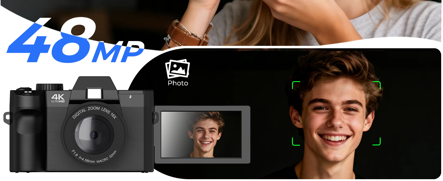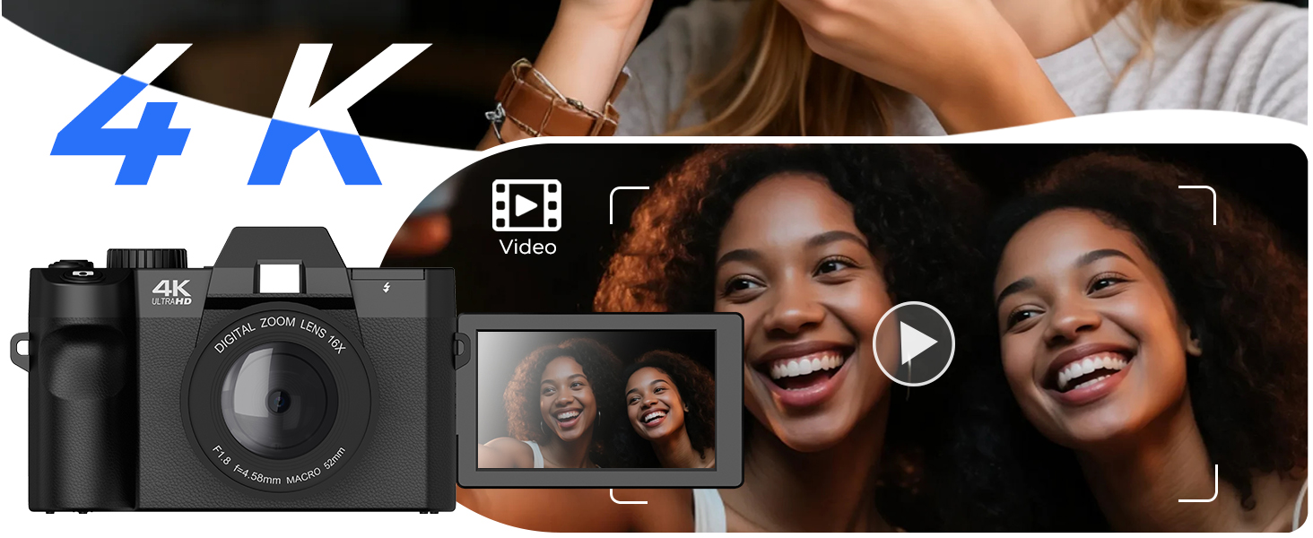 [ 4K Digital Camera ] This new upgrade 4K digital camera shooting clear photos up to 48 megapixels and video resolution up to 4K. Supporting 16X Digital Zoom, besides, it support both autofocus and manual focus, you can choose the focus mode according to different shooting scenes. This photography camera is a cost friendly entry-level camera for beginners.