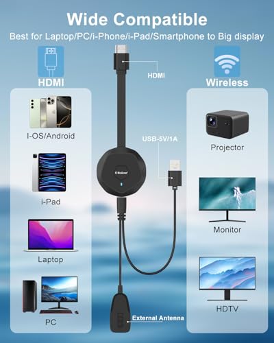 - 【Crystal Clear HD Streaming Experience】Transform any screen into a cinematic experience with our intelligent HDMI display adapter. With 4K Ultra HD input compatibility, it intelligently optimizes content for smooth 1080p output at 5GHz, perfect for smooth movie marathons and professional presentations. Experience every pixel come alive with enhanced dynamic contrast, delivering 100% sharper details than with conventional HDMI dongles.