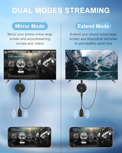 - 【Seamless Cross Device Mirroring】Free yourself from screen size restrictions thanks to dual-band 2.4G/5G WiFi sync. Whether streaming videos from iOS devices or presenting Excel spreadsheets on laptops, you'll experience military grade signal stability (tested for 72 hours of continuous transmission). Our technology automatically adjusts the bitrate to ensure an extremely low latency of 0.3s.
