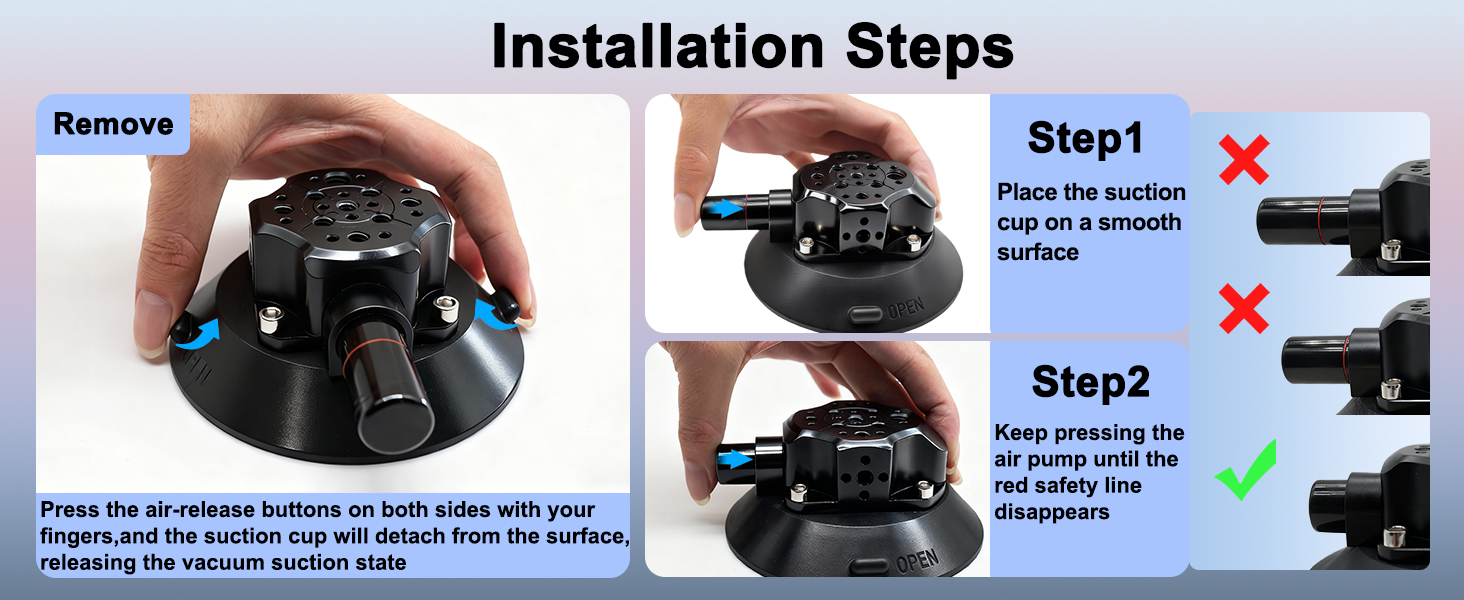 Dual Safety Lock for Maximum Security – Features a primary vacuum suction lock and a secondary safety locking mechanism on the magic arm with silicone pads. This dual system ensures your valuable camera gear stays firmly attached, providing peace of mind during dynamic shots.