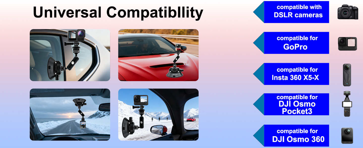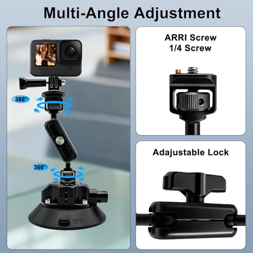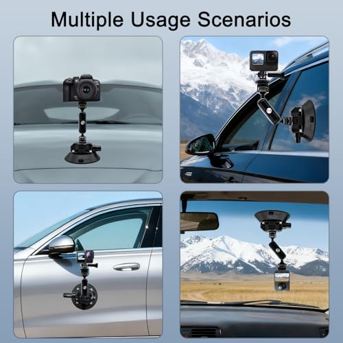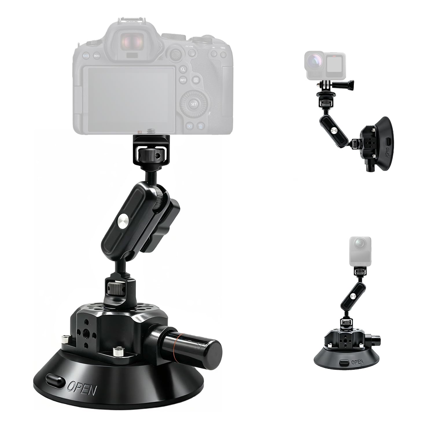 Dual Safety Lock for Maximum Security- The mount incorporates a primary vacuum suction lock along with a secondary safety locking mechanism located on the magic arm featuring silicone pads. This dual-lock system guarantees that your valuable camera equipment remains securely attached during dynamic shooting scenarios.