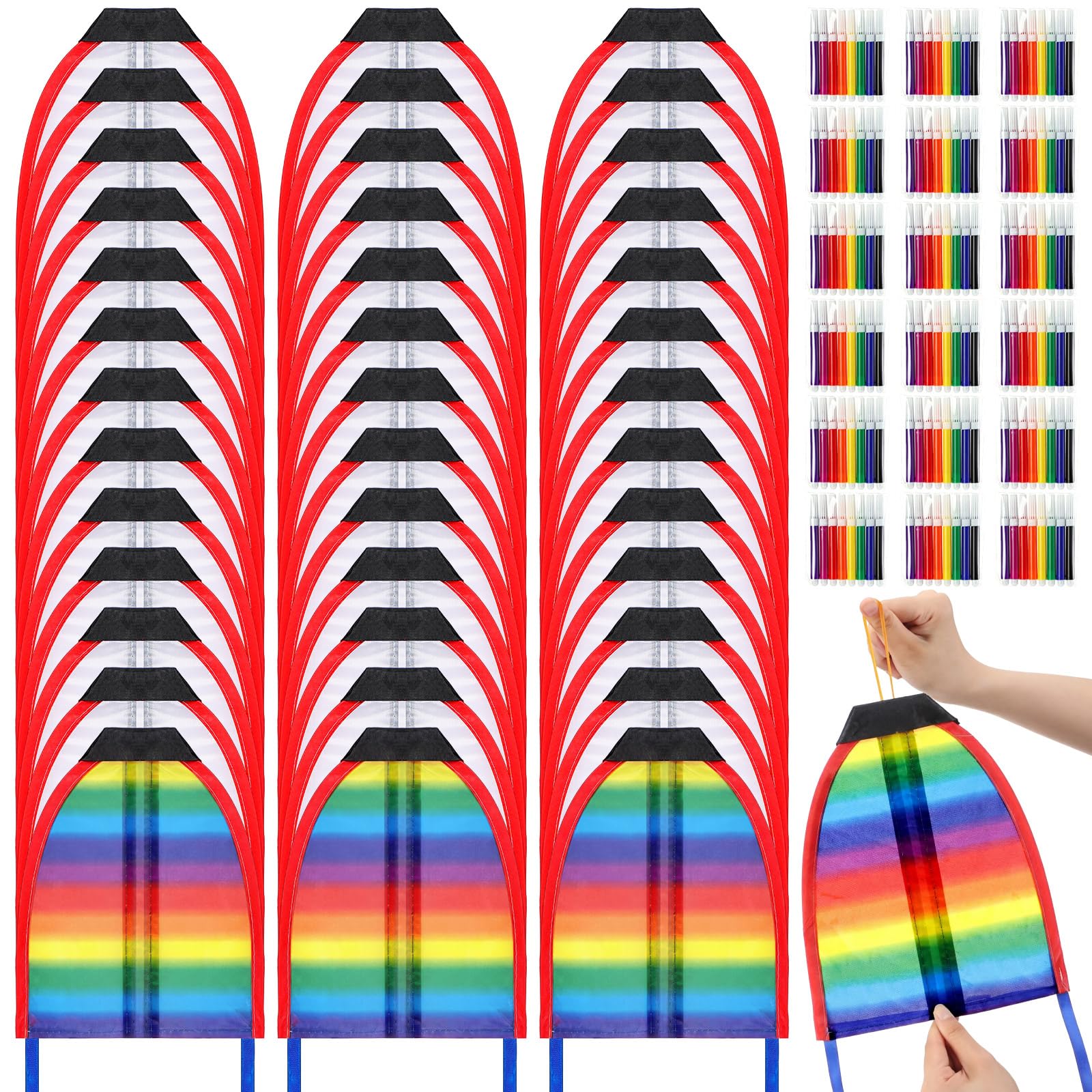 Mini Kite Launcher DIY Kit: this DIY kite launcher set includes 50 blank launcher kites, and 30 boxes of 8-color watercolor pens, allowing you to unleash your imagination and creativity, coloring the kites with vibrant hues; Perfect for outdoor activities with family, ultimately enjoying the fun of flying your own handmade kites