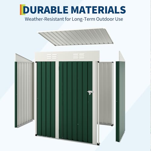 - Smart Design Features: A sloped roof prevents rainwater or debris buildup, while built-in vents promote airflow—keeping your equipment dry and protected year-round. The compact 5×3 ft footprint fits perfectly in tight outdoor spaces without compromising storage volume.