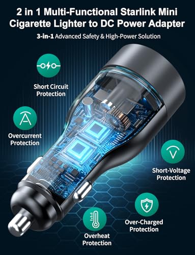 [ Triple Protection System ] This dedicated Starlink Mini power adapter converts cigarette lighter power to DC, and comes with smart safety safeguards that actively guard against short circuits, overheating and overcurrent issues. Universal fit for all car cigarette lighter plugs, boasting efficient 12V→24V step-up conversion, perfect for worry-free long-hour use in remote areas.