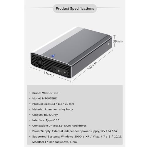Ample storage capacities for all your files: Available in multiple storage sizes (3TB, 4TB, 6TB, 8TB, 10TB, 12TB, 14TB, 16TB, 18TB and 20TB), this external hard drive offers plenty of room for backups, multimedia libraries, work documents, and game storage. Whether for professional projects or personal use, it meets your storage needs with ease.