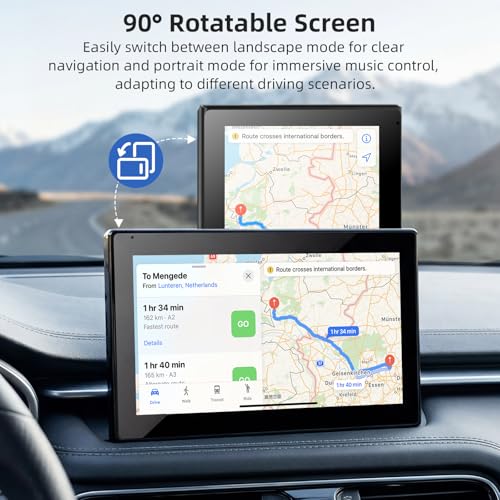 High-Definition Display And Flexible Installation: Features 1024 × 600 2.5D HD IPS display for clear images even in bright sunlight; supports 90-degree rotation in landscape and portrait for navigation and entertainment; includes suction mount for windscreen or dashboard installation