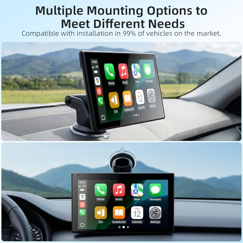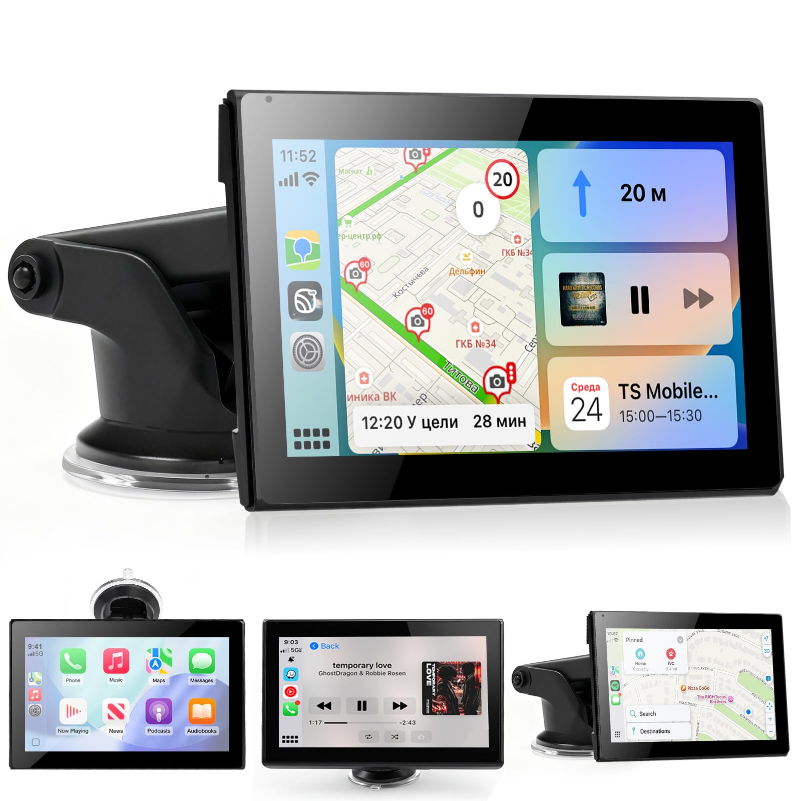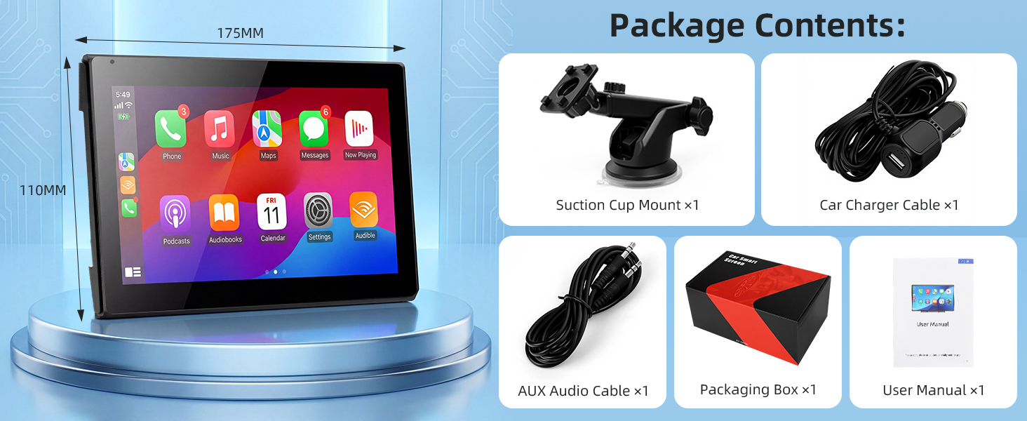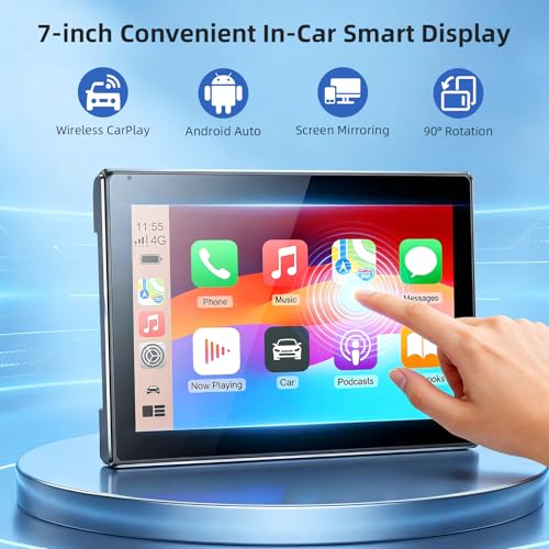 Plug-and-Play Car Smart Screen: 7-inch portable car display screen; installs without removing the factory head unit or altering wiring; instantly upgrades almost any vehicle to a smart infotainment system supporting car play, apple car play and android auto
