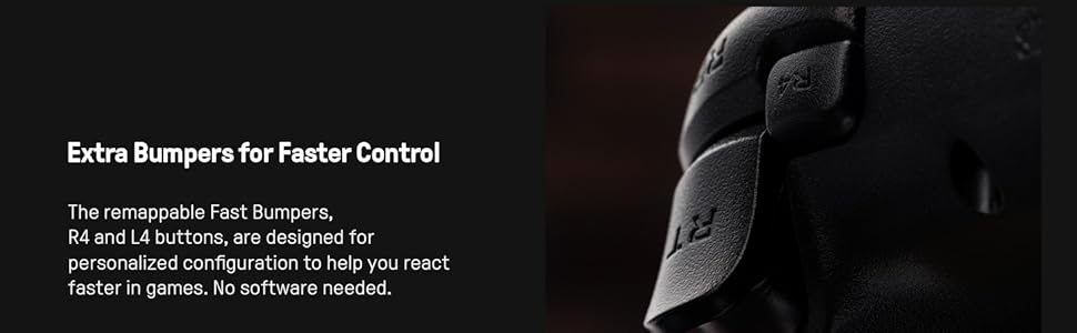 - Extra R4/L4 bumpers. Custom button mapping without using software. Turbo function.