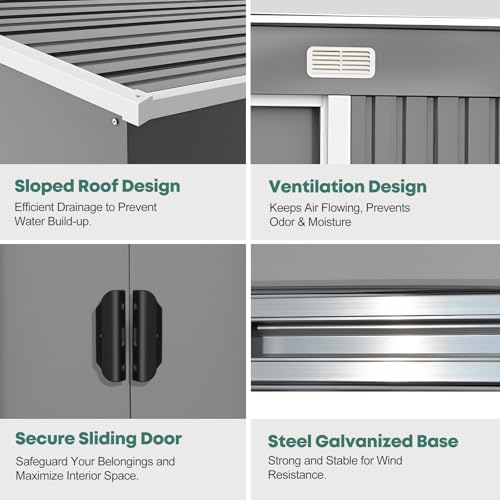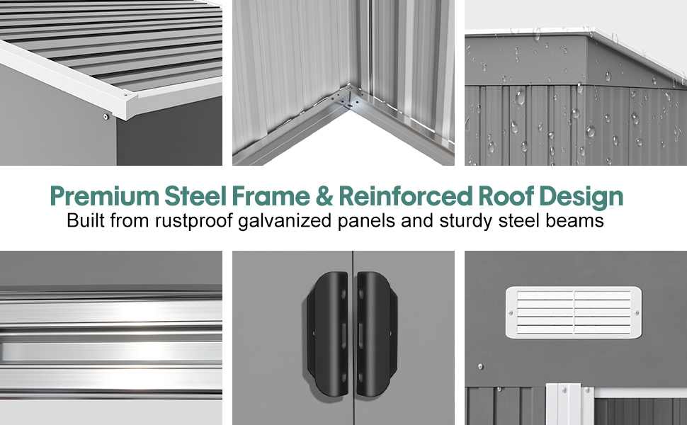 - DURABLE CONSTRUCTION: Made from galvanised steel with weather-resistant coating, this outdoor storage shed is windproof, rainproof, and UV resistant for long-lasting durability and protection