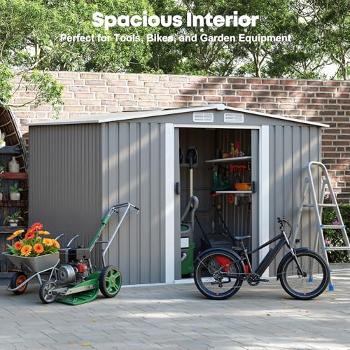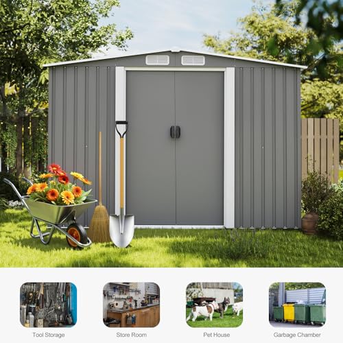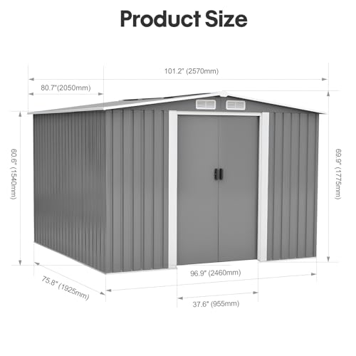 - GENEROUS STORAGE SPACE: Metal garden shed measures 246 cm (L) x 193 cm (W) x 177 cm (H), providing ample room for storing garden tools, equipment, and outdoor accessories